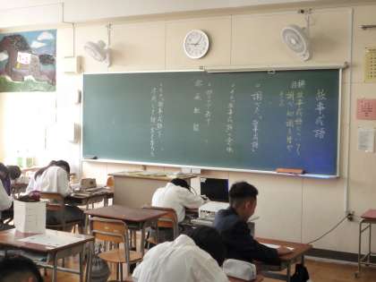 7年生の国語で、故事成語の意味を調べ、知識を増やしていくという取り組みがありました。さまざまな故事成語について記録していました。