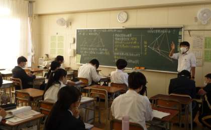 9年生の数学で、相似な図形の説明がありました。さまざまな例をもとに、どうすれば同じ形のまま大きさを変えることができるか、考えながら取り組んでいました。