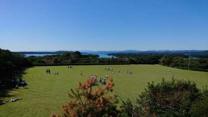 志摩自然学校での昼食を終え少しゆっくりしました。この景色とこのお天気は滅多に無いことだと自然学校の方もおっしゃってました。