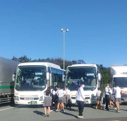 修学旅行一行は安濃サービスエリアで一回目のトイレ休憩を取りました。