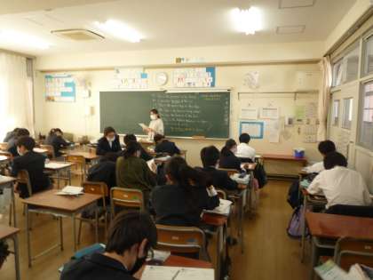 8年生の英語で、比較級などの授業がありました。例文をもとに文法も考えながら何度もチャレンジして書き込んでいました。