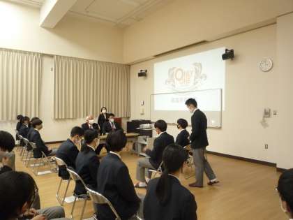 9年生は5,6限目、高校から先生方と卒業生に来ていただき、面接講座を開きました。細かい動作などを教わり、非常に参考になりました。