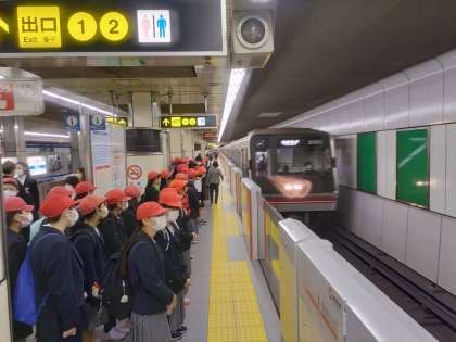 数年間、コロナ禍で出来なかったスポーツ交歓会。6年生は会場の長居公園に向かいます。