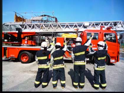 消防署での様子です。体力も使う色んな体験をさせてもらいました。