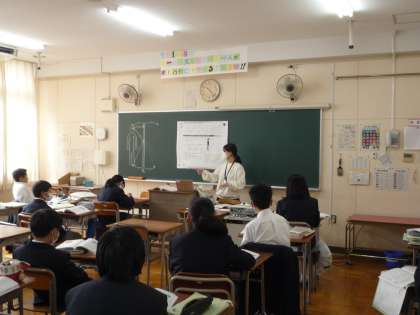 7年生の理科で、光の授業がありました。どのように光は反射したり屈折したりするか、黒板の例をみながらその特性を確認していました。