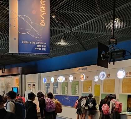 プラネタリウムが終わって、館内見学です。 はじめは4階。「宇宙をさぐる」フロアです。
