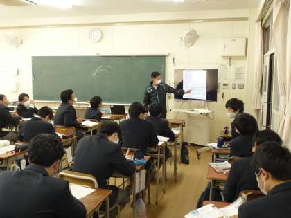 8年生の保健の授業で心肺蘇生法の説明がありました。いざという時に適切に対応できるよう電子黒板の説明を真剣に聞いていました。