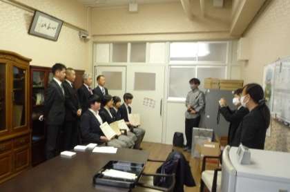 9年生が税の作文に応募し、たくさんの中から入選した生徒に表彰状が送られました。最高学年らしくきびきびと対応できていました。