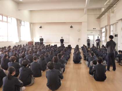 始業式後の中学校の全校集会で、学習面、生活面、健康面からそれぞれ話がありました。3学期は短いので、早めに次の学年への意識をもって行動するためのポイントをいくつか教えてもらいました。