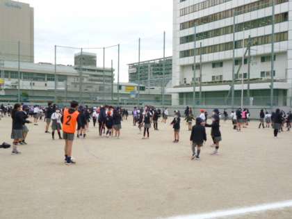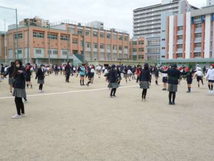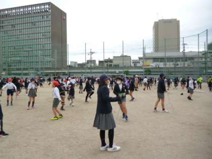 練習はたてわり班ごとに行います。苦手なとびかたにも積極的にチャレンジしてみましょう。