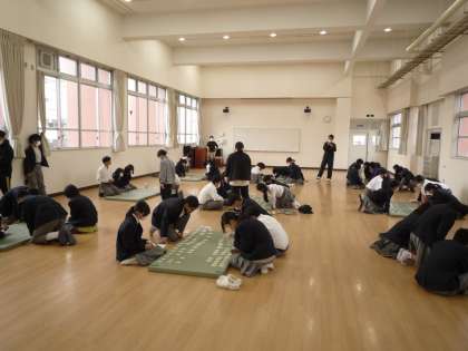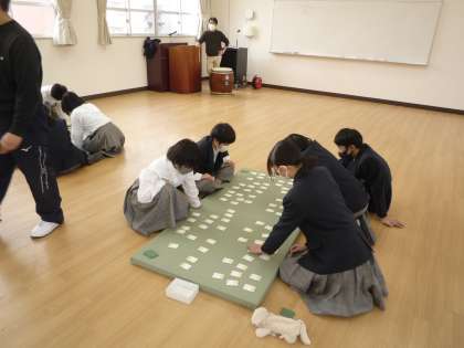 本日、5、6限目7年生は百人一首大会が行われています。札がとれたときは大喜びする姿がたくさん見られました。楽しく取り組んでいました。