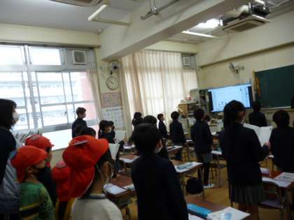 2時間目は学校の中を見て回り、3時間目は1年生と交流します。