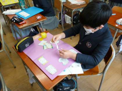 縦割り班のお兄さん・お姉さんに向けて、在校生がメッセージをかきました。