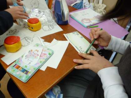 「卒業を祝う会」で6年生に色紙を贈ります。