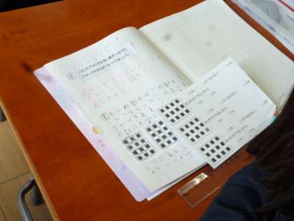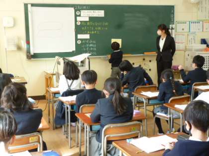 同じ数ずつ分けた1つ分の大きさを、分数を使って表す学習をしています。