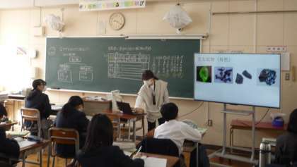 7年生の理科で岩石の説明がありました。その中にある鉱物の種類など、電子黒板をつかって確認していました。