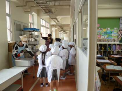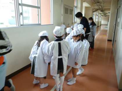 給食の係にはどんなものがあって、どうしたらいいのか、先生から話を聞いています。