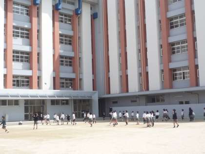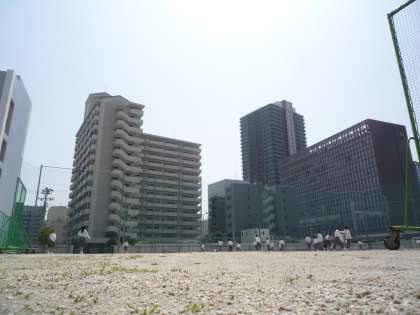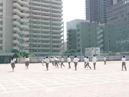 少し暑いですがとてもいい天気の中、中学生も小学生も元気にボールであそんでいます。