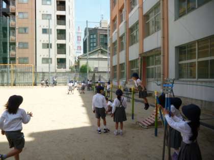 低学年が内グラウンドで遊んでいます。