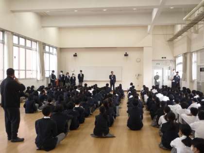 4月からの全校集会で先生や校長先生も話をした校訓にある内容です。校訓である「健康」「思考」「実行」の3つは、それぞれ話をしましたが、全部つながっています。まずは何事をするにも心身ともに健康でなければ、学校に来られなかったり、勉強ができなかったりします。そして、授業や試験勉強では考え理解を深め、テストに向けていつまでに何をすればよいかを考えます。そして、それらを実行していくことが必要です。