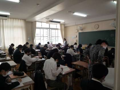 7年生の数学で、中間テストの解説と復習の授業がありました。それぞれ間違いの理由と正しい答えの導き方を学んでいました。