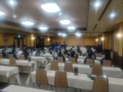 ホテル郡上八幡に着いた生徒達。お昼ご飯を食べています。