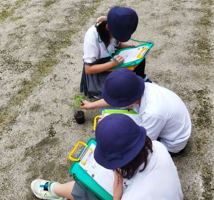 葉の数、草たけ、くきの太さなど、くわしく観察しています。