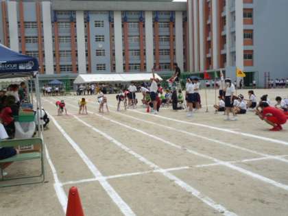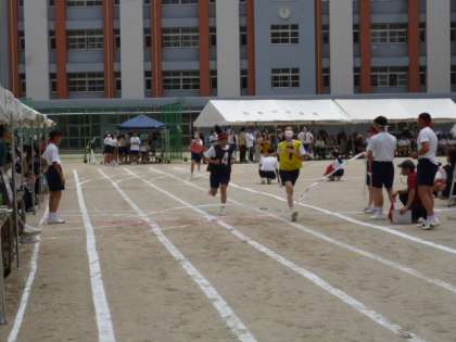 200M走の様子です。トラック一周を全速力で駆け抜けます。、