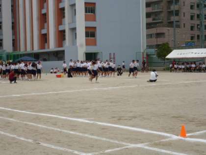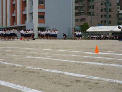 8年学年種目「X人Y脚」。息を合わせるのが難しいです。