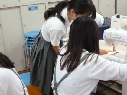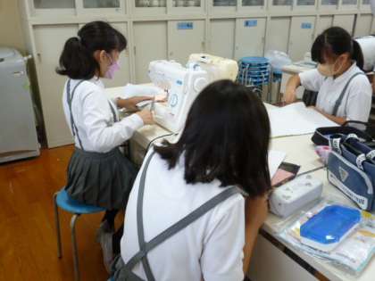 ミシンを使って、しるしの上を正確にぬっていく学習です。