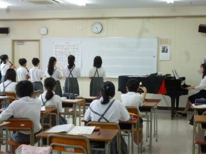 来週に行われる歌のテストに向けて、「おぼろ月夜」の練習をしました。