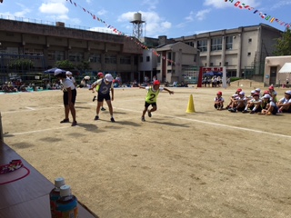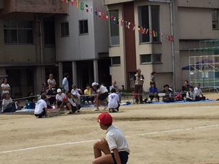 9月27日日曜日 恵美小学校で運動会が行われました。日本橋小学校と同日開催で、この日曜日と来週10月4日日曜日に多くの大阪市にある小学校が運動会を行います。昼前になり、朝の涼しさからじわじわと暑くなってきましたが、子どもたちは元気よく演技を行っていました。多くの地域の方や保護者の方々が敷物を敷いて応援をしていました。