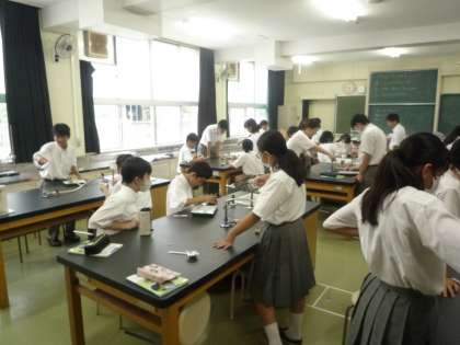 7年生の理科で、ガスバーナーを使った実験がありました。使い方を再確認し、実際に物質を加熱しました。気づいたことをしっかりと記録していました。