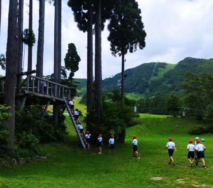 広い高原で、思い思いの遊びを楽しんでいます。
