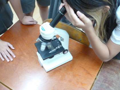 5年生理科の時間。へちまの花粉を顕微鏡で観察しています。上手く観られたかな。