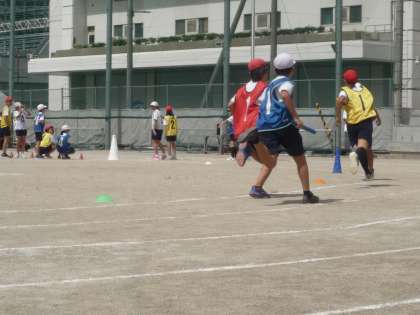 リレーの練習をしています。上手にバトンパスはできたかな。