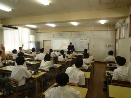 7年生の美術で、色の種類に関する授業がありました。質問形式でさまざまな問題がでましたが積極的に自分の答えを発表していました。