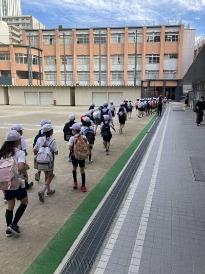 今日は天気にも恵まれ5年生の遠足になっています。いよいよ出発です。
