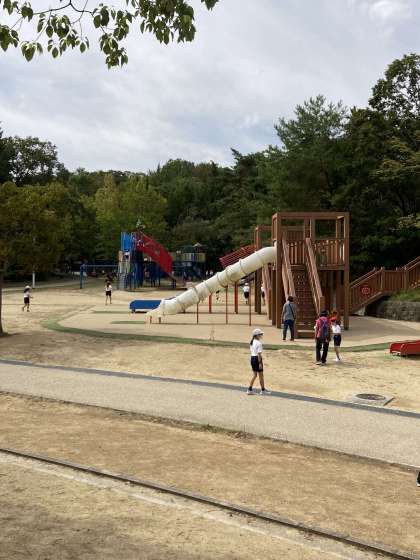 たくさんの種類の滑り台を、ルールを守って思いっきり楽しんで滑り降りてます!