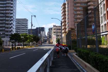 学校を出発しました。 大阪城公園に向かいます。