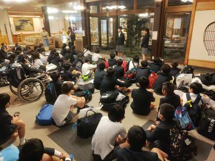 宿泊施設 賢島「みち潮」に到着しました。 入所式を行っています。