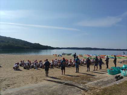 シーカヤックの説明が始まりました。みんなわくわくドキドキです。