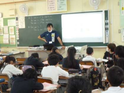 中学校の先生が教えに来てくれています。canの使い方を、映像の教材も用いて、音楽とリズムに合わせて学習しています。