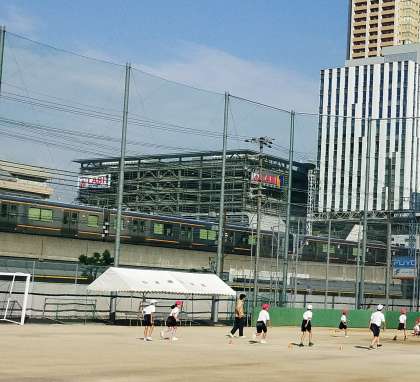いろいろな走り方にチャレンジしています。先生の見本を見て、同じように走ります。