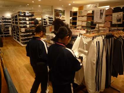 8年生の職業体験の様子です。一生懸命取り組んでいます。ユニクロさんとかごの屋さんの様子です。服を整えたり、洗い場や品出しを頑張っています。