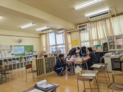 本校で体験をしていた生徒は午後から日本語教室で1年生の授業の補佐を頑張っていました!1年生もとても楽しそうでした。