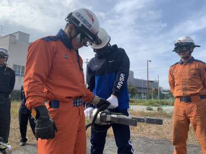 消防署では昨日の救助訓練に引き続き、室内で救命救急の講習を受けていました。胸部圧迫がとても大変そうでした。
