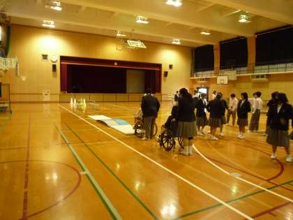 6限目に7年生は福祉体験学習がありました。車いす体験と、アイマスク体験を行っている様子です。体験を通して自分の考えを深めていました。