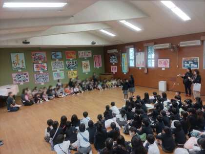 今日は日東幼稚園に浪速小学校の2年生が行き、交流会をします。