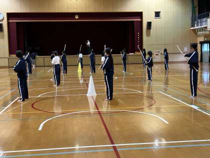 なぎなた連盟の方が講師で来ていただき、授業を受けています。